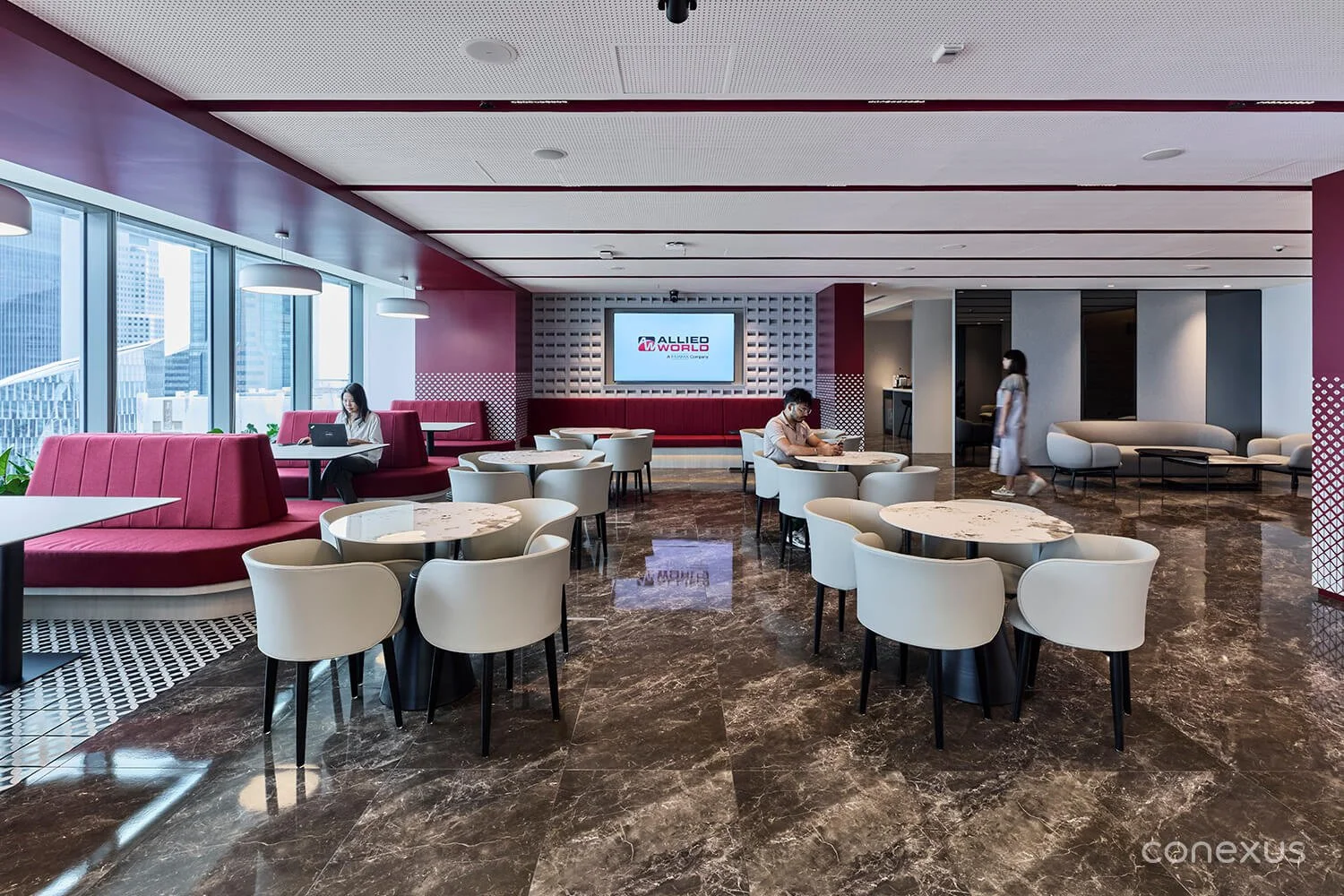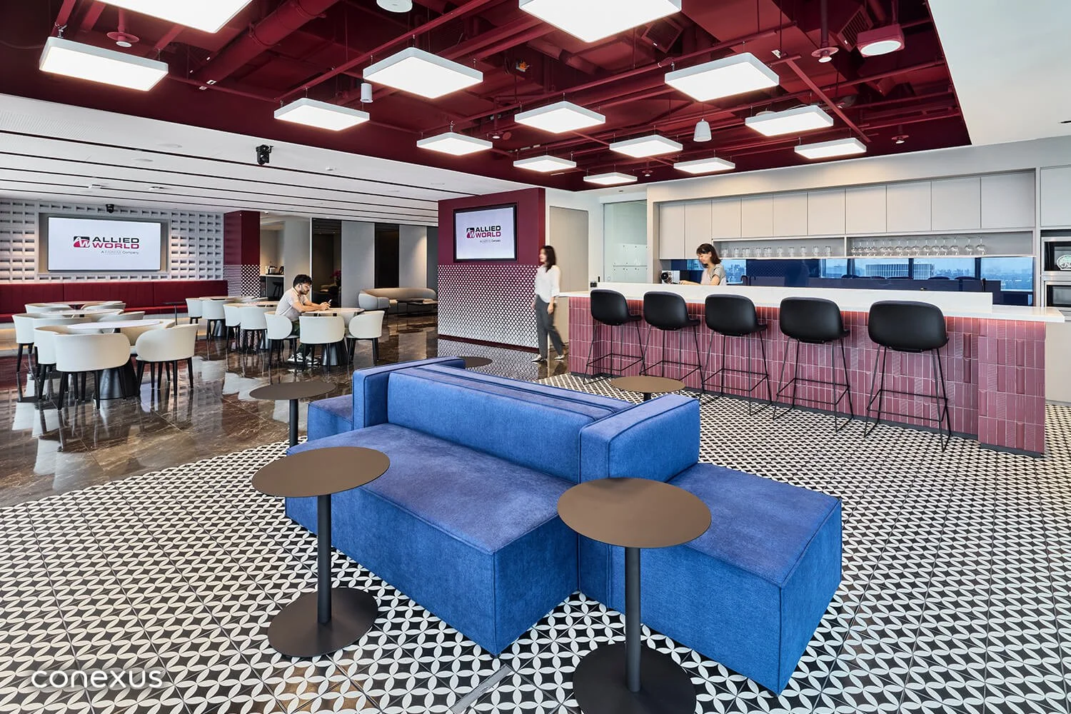 Designed and built by Conexus Studio, the result is a people-first environment that blends clarity, energy, and purpose. Key design elements — like the use of Allied World’s signature red — supports a vibrant culture of trust, collaboration, and forward thinking.