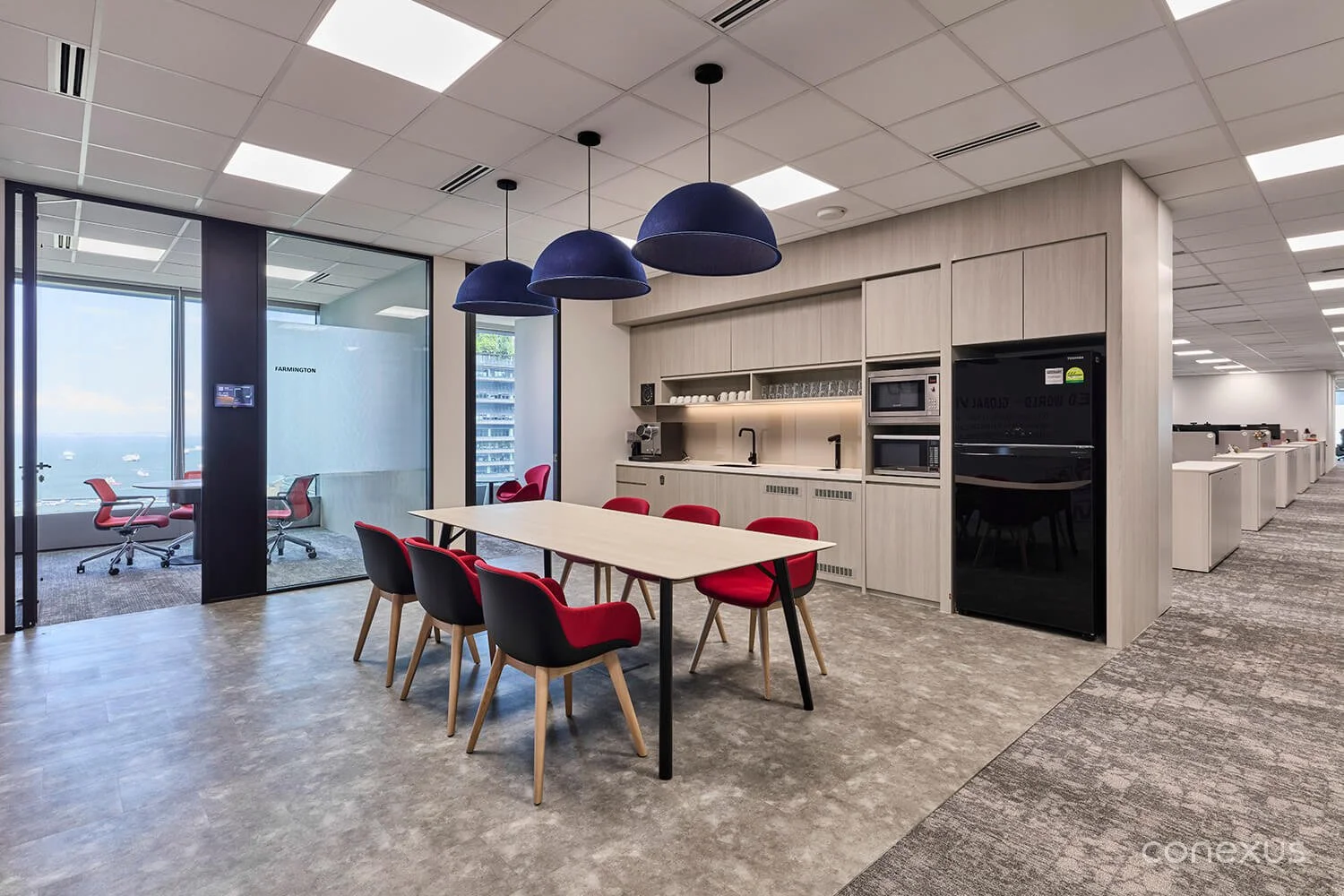 Beyond the social heart of the office, the floorplan is intuitively zoned for both privacy and openness. Conexus Studio applied strategic spatial planning to optimise light, acoustics, and traffic flow — ensuring the office moves in step with the pace of work.