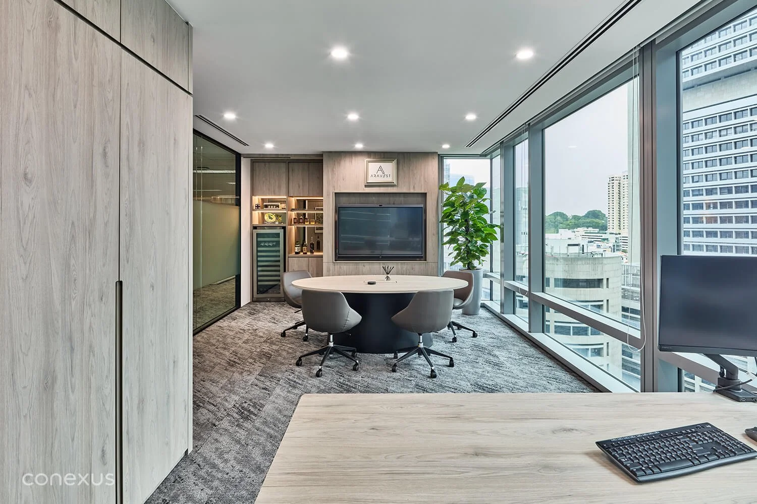 Aravest’s new office, following its acquisition by Sumitomo Mitsui Finance and Leasing (SMFL), represents a fresh and exciting new chapter for its private fund operations. The space, developed in close collaboration between Conexus Studio and Aravest’s leadership, embodies the firm’s regional ambitions. Designed to inspire growth and innovation, it seamlessly caters to the collaborative needs of both Aravest and SMFL teams, setting the stage for shared success in the heart of Singapore’s iconic Capital Square building.
