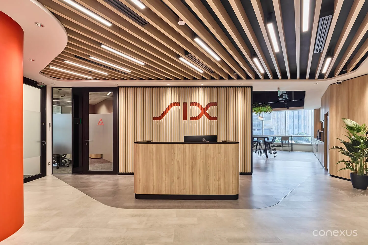 SIX Group’s Singapore office, designed and built by Conexus Studio, is a vibrant, flexible workspace that brings together the company’s Swiss roots and global outlook. SIX connects financial market participants across Switzerland, Spain, and globally, providing critical infrastructure, information, and banking services that ensure efficiency, stability, and innovation. The office reflects this high-performance, forward-looking identity, creating a motivating environment that fosters focus, collaboration, and creativity — essential for a firm operating at the forefront of complex global markets.